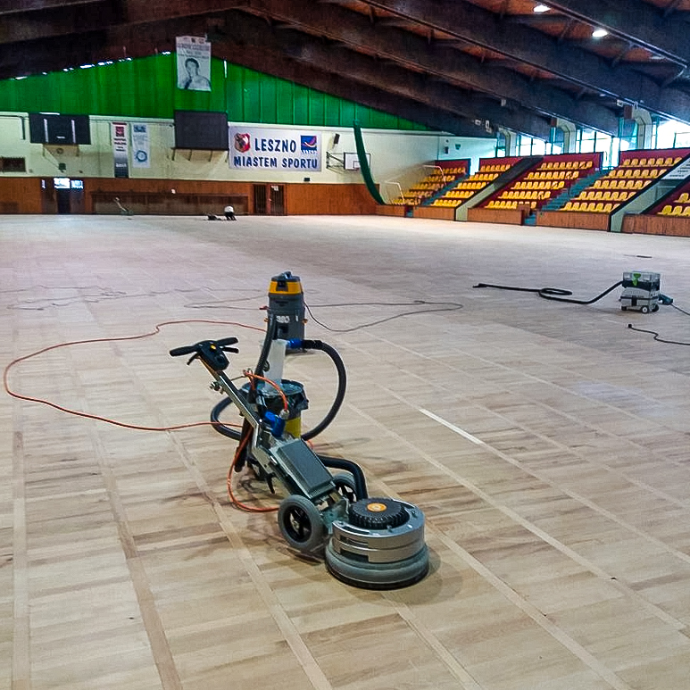 Dzięki nowoczesnym maszynom, certyfikowanym lakierom i doświadczeniu w pracy na dużych powierzchniach odnawiamy podłogi tak, aby były estetyczne, trwałe i zgodne z normami użytkowania obiektów sportowych.